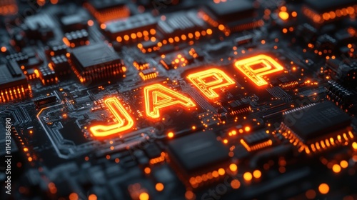 Fototapeta premium Java Programming Language Circuit Board Design with Neon Lighting