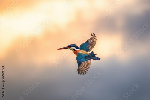 © Tidarat, Obraz premium Javan kingfisher flying on background