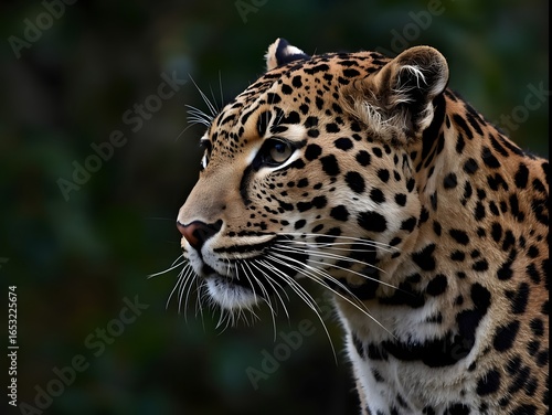 © Zee store, Naklejka premium Javan Leopard Close-Up – Intense Gaze & Rosette Fur Detail in Blurred Green Forest Background