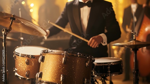 © Syahrul Zidane A, Naklejka premium Jazz drummer in tuxedo performing live music
