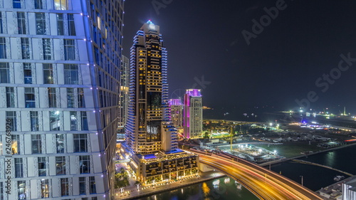 © HyperlapsePro, Fototapeta premium JBR and Dubai marina aerial night timelapse