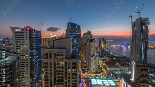 © HyperlapsePro, Fototapeta premium JBR and Dubai marina after sunset aerial day to night timelapse