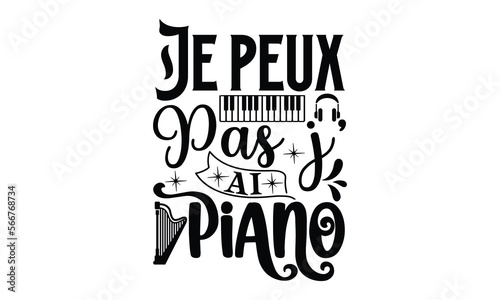 © moondesigner, Naklejka premium Je peux pas j’ ai piano, Playing musical instruments t-shirt design, Colorful flat isolated templates vector illustration for plotter and laser cutting, svg, For stickers, Rock, mugs, etc, EPS 10