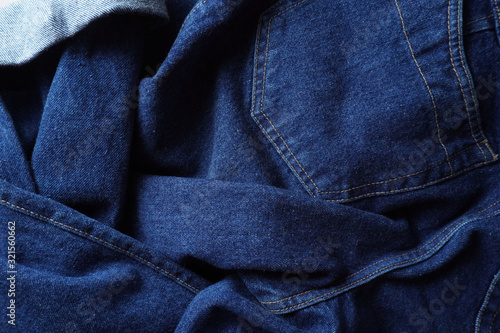 © YanaKho, Fototapeta premium Jeans background. Denim jeans texture. Blue denim pattern.