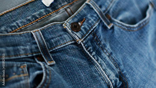 Fototapeta premium Jeans denim texture close up , focus only one point , soft blured background...