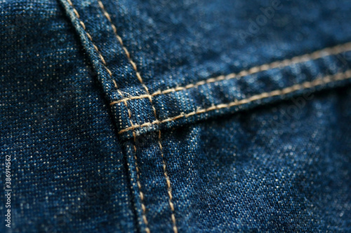 Fototapeta premium Jeans denim texture close up , focus only one point , soft blured background...