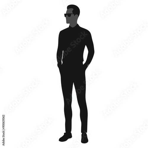 Fototapeta premium jeans fashion man stand with wear sunglass and stylish pose vector silhouette,