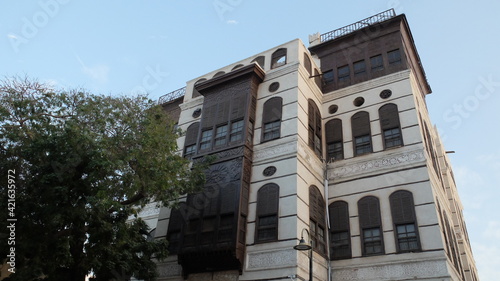 Fototapeta premium Jeddah, Saudi Arabia - 10 January 2020: Traditional houses in Al Balad, UNESCO World Heritage