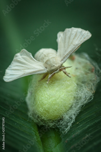 Obraz premium Jedwabnik (bombyx mori) na kokonie, pionowy