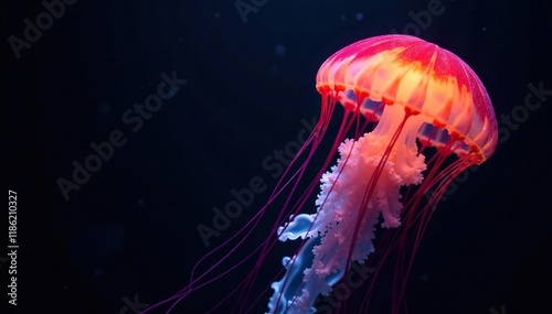© Temteen, Fototapeta premium Jellyfish against black background with subtle glow, nocturnal, dark