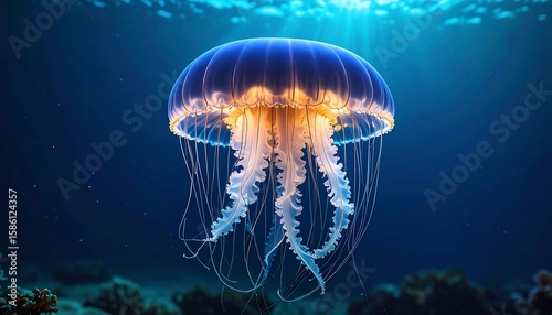 Fototapeta premium Jellyfish in underwater sunlit scene