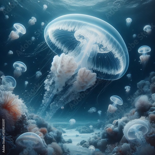 © Pila2, Obraz premium Jellyfish Moon Jelly A translucent jellyfish with a saucer shape