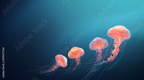 Fototapeta premium Jellyfish pattern blue colors. Generative ai.