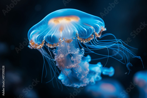 Fototapeta premium Jellyfish Sea Nettle (Chrysaora pacifica) poisonous jellyfish in deep sea...