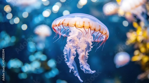 © BerkahStock, Fototapeta premium Jellyfish Swimming in a Blue Ocean