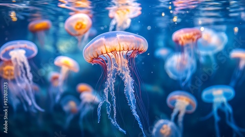 © Irina, Naklejka premium Jellyfish swimming in ocean sealife concept composition background