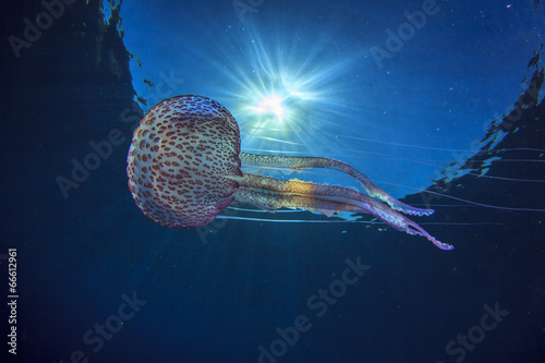 © Richard Carey, Obraz premium Jellyfish underwater and sun