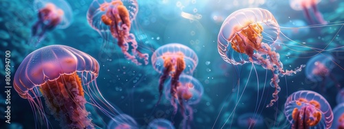 Fototapeta premium jellyfish underwater glows floating ocean sea