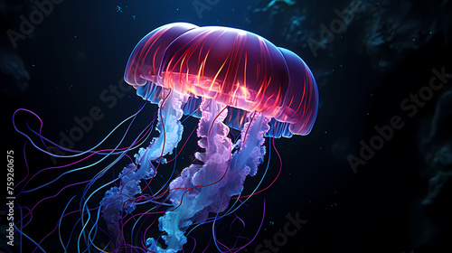 © Derby, Naklejka premium Jellyfish with long tail floating in the sea