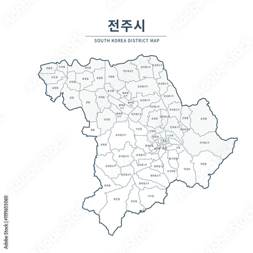 Fototapeta premium Jeonju map. Map of South Korea with Major Cities, Clean Line Design on White...