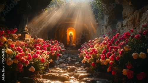© Nadюshes , Fototapeta premium Jerusalem. An ancient Christian temple. The Holy Sepulchre. 30 silver pieces. The Cave of Christ. The cross of Christ. The resurrection of Jesus Christ in the cave.