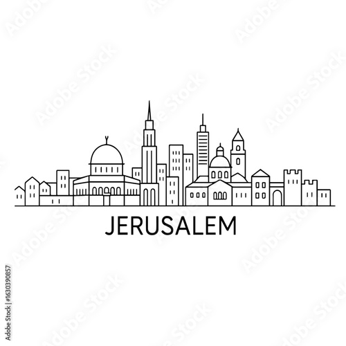 © Roman, Fototapeta premium Jerusalem city skyline vector on white background Vector line city skyline