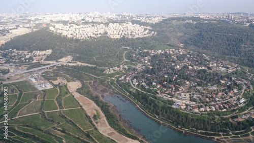 © ImageBank4U, Fototapeta premium Jerusalem Dam in the spring aerial view Drone view over Beit zait barrage , April 2022