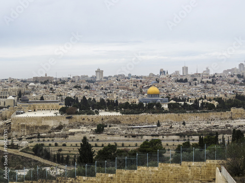 Naklejka premium Jerusalem, Israel - view of The Old City of Jerusalem from the Mount of Olives
