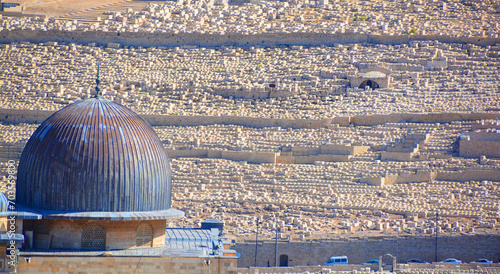 Naklejka premium Jerusalem jewish cemetery and Al-Aqsa Mosque, also known as Al-Aqsa and Bayt...