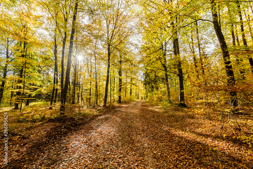 © kugelwolf, Fototapeta premium Jesienna przyroda z łąkami i lasami piękna panorama spokojny dzień.