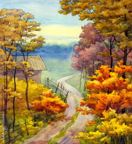 © Marina, Naklejka premium Jesienna scena drogowa