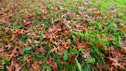 © W Korczewski, Obraz premium Jesienne drzewa w parku w słoneczny dzień.