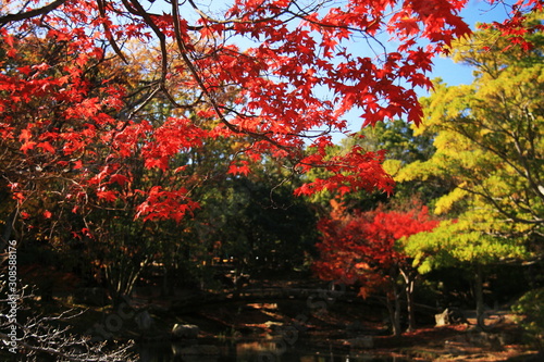 © RITSU MIYAMOTO, Naklejka premium Jesienne liście w Japonii i parku zamkowym Hamamatsu