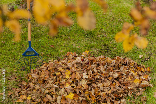 © Bea, Fototapeta premium jesienne prace w ogrodzie - zbieranie liści