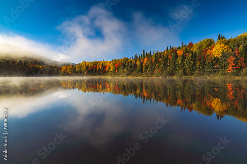 © Roman Barisev, Fototapeta premium Jesienny las odbity w wodzie.