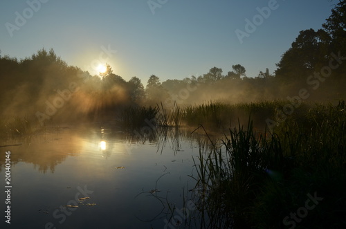 © Ewa, Fototapeta premium jesienny park o wschodzie słońca, Polska