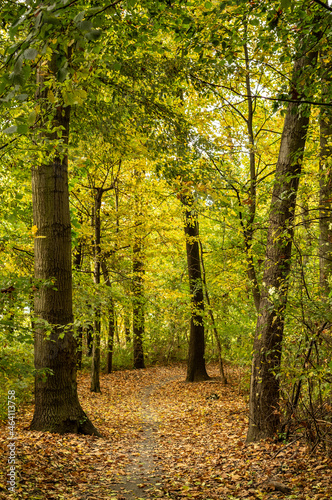 Obraz premium jesienny park z kolorowymi liśćmi na Wyspie Bolko w Opolu