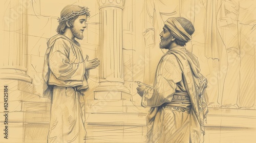 Fototapeta premium Jesus as a Boy Teaching in the Temple, Biblical Illustration of Wisdom and Authority, Ideal for Religious article