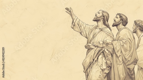 Fototapeta premium Jesus' Ascension and Promise of Return, Biblical Illustration of Hope, Perfect for Religious Stock Photos