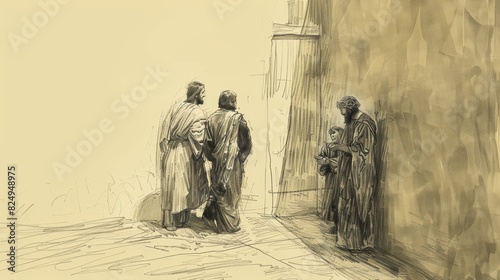© T Studio, Obraz premium Jesus' Betrayal and Peters Denial, Biblical Illustration of Forgiveness, Perfect for Religious Stock Photos