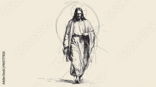 © Faith Stock, Obraz premium Jesus Christ. Digitally drawn illustration of Jesus Christ on white background.