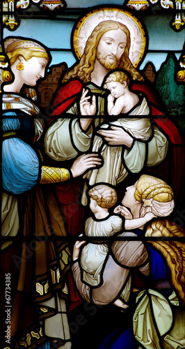 © Howgill, Obraz premium Jesus Christ with children in stained glass