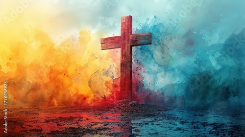 Fototapeta premium Jesus Christ with cross. Christian background god religion cross religious symbol