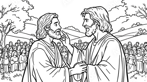 © 3D Demo Stock, Obraz premium Jesus Confronts Pilate (line art), isolated on white background