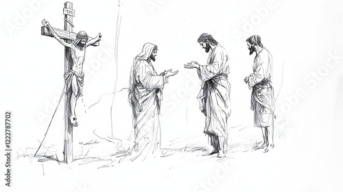 Obraz premium Jesus Converses With Two Figures Near the Crucifixion