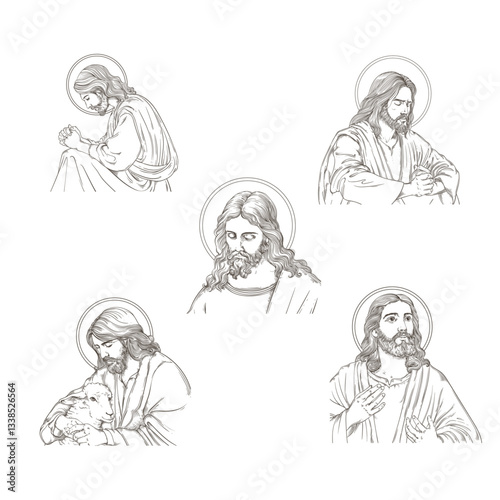 Fototapeta premium Jesus Easter Sunday Christian Vector Illustrations
