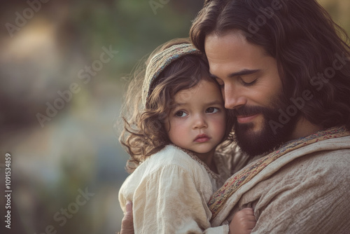 Fototapeta premium Jesus Embracing a Child with Love