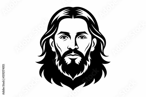 © MK, Fototapeta premium Jesus face silhouette black vector