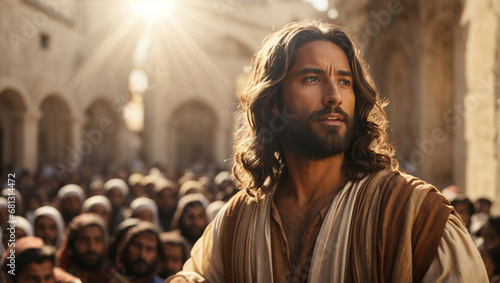 © Marcos Santos, Naklejka premium Jesus followed by the crowd