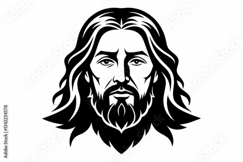 © Pinak, Fototapeta premium jesus head line art silhouette vector illustration